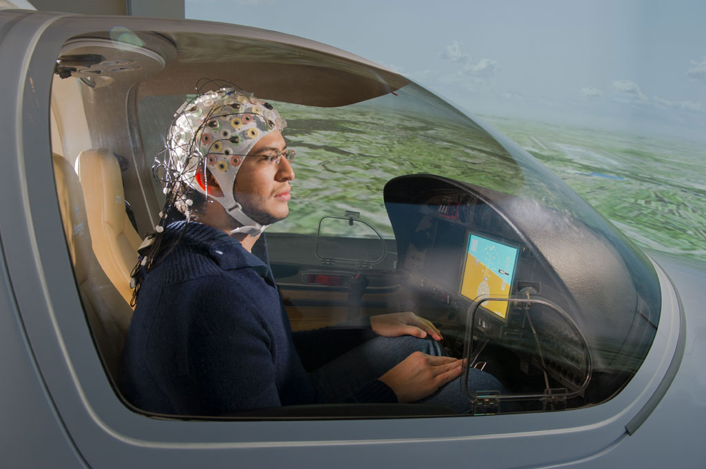 Num vídeo de demonstração do Instituto para a Dinâmica de Sistemas de Voo, da Universidade Técnica de Munique, apresentado esta semana, vemos um homem no interior de um simulador de voo onde existe um painel e um manípulo situado à esquerda do cockpit. O “piloto” tem uma espécie de touca branca semelhante às que se usam nos electroencefalogramas, com vários fios ligados a eléctrodos, para medir a actividade cerebral.