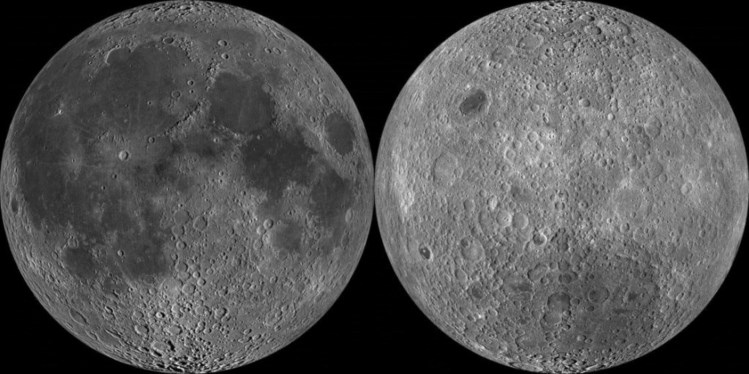 | O lado visível da Lua (à esquerda) e o lado oculto da Lua (à direita) NASA |