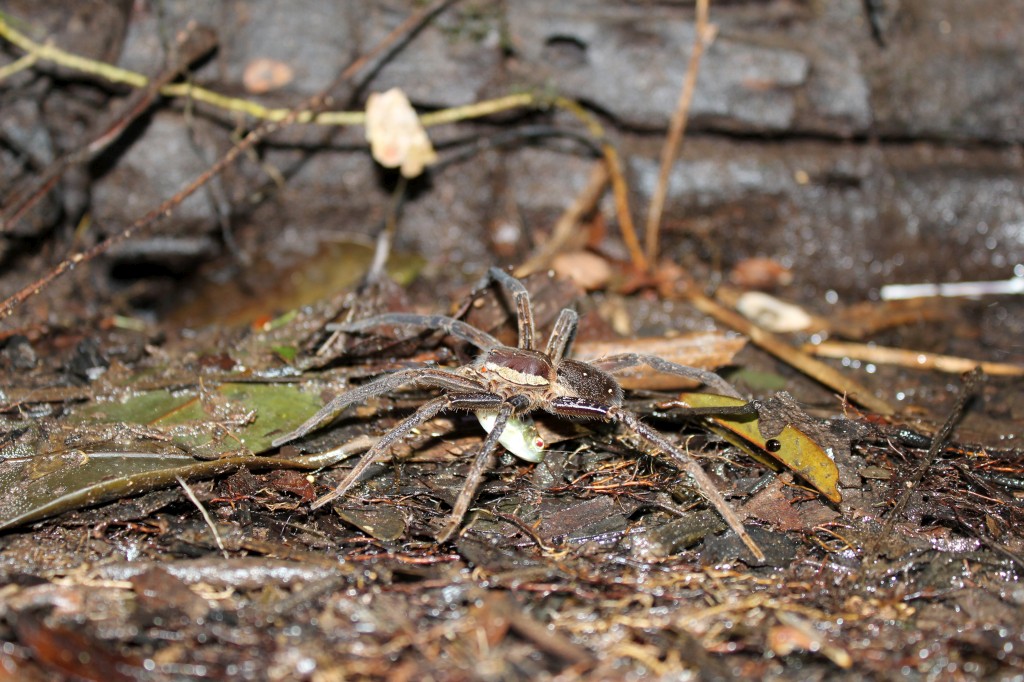 Uma aranha macho Ancylometes come um peixe numa resreba em Samona Lodge, no Equador