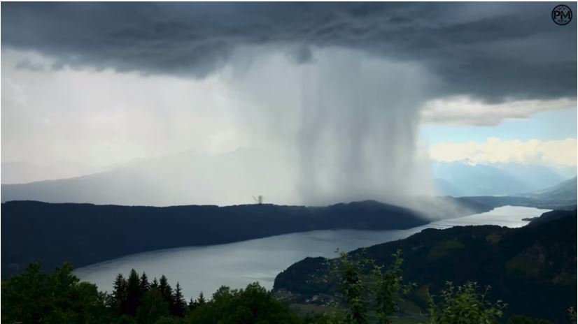 O usuário Peter Maier compartilhou nas suas contas do Facebook e do YouTube um vídeo espectacular de uma grande precipitação sobre a área do Lago Millstatt na Áustria, que ele descreveu como "Tsunami caíndo dos céus" ( "Tsunami from heaven", em Inglês).