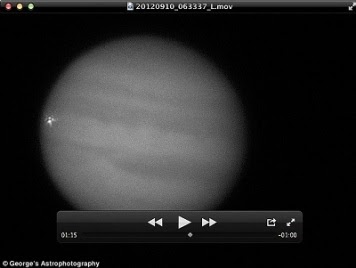 O astrônomo amador George Hall capturou o choque com uma câmera instalada em um telescópio, mas só verificou a sua filmagem depois de ouvir on-line que outro astrônomo, observando o planeta com seus próprios olhos, viu a explosão enorme florescer de Júpiter em um piscar de olhos, informou o jornal Daily Mail.